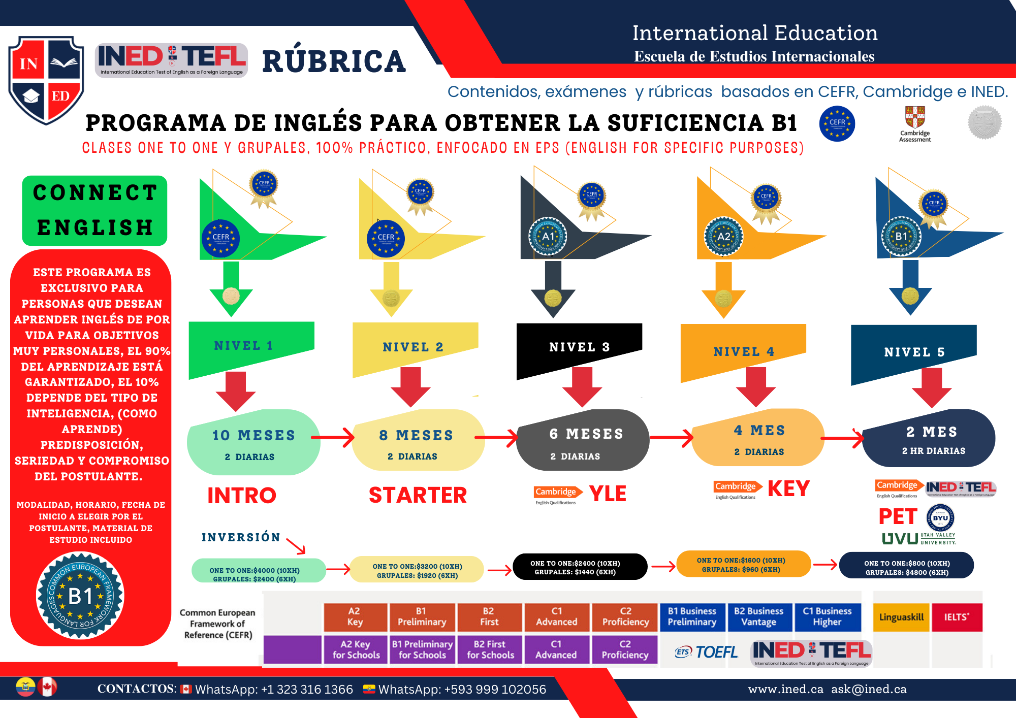 INED siempre innovando en cuestión de enseñanza de lenguas, ha diseñado un programa llamado Inglés para propósitos específicos (English for Specific Purposes o ESP), para dar respuesta a las necesidades de los profesionistas que, más allá del aprendizaje de la lengua común, requiere una práctica relativa a determinadas áreas profesionales, para que de esta manera puedan comunicarse de una forma más efectiva y así mejorar su desempeño en el idioma.